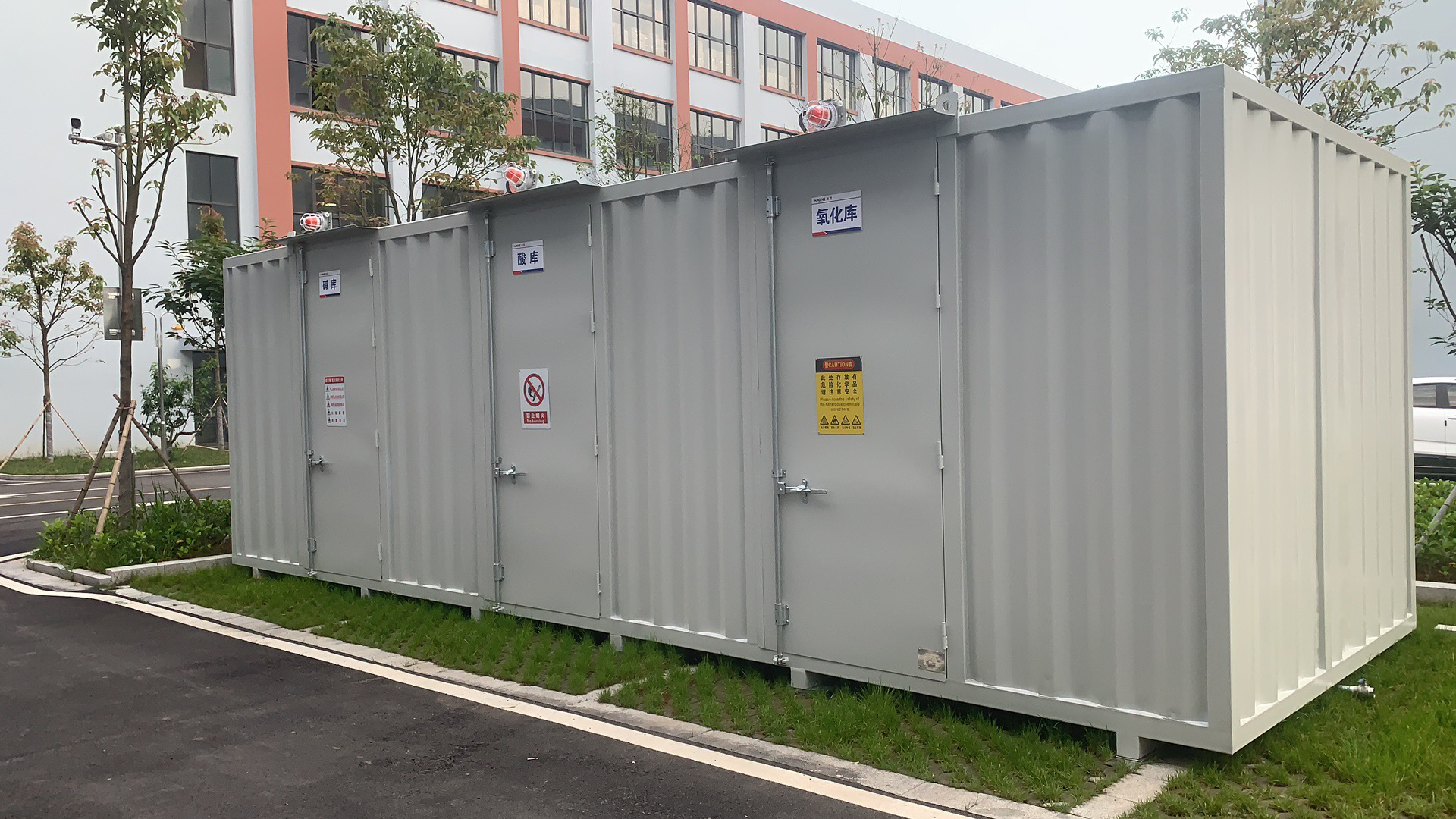 室外危险化学品存储柜通常具有防火、防爆、防渗漏、防水、耐一定腐蚀等特性,以确保在极端气候条件下,如高温、恶劣天气等情况下,柜内的化学品仍然能够安全存储而不对周围环境造成危险。